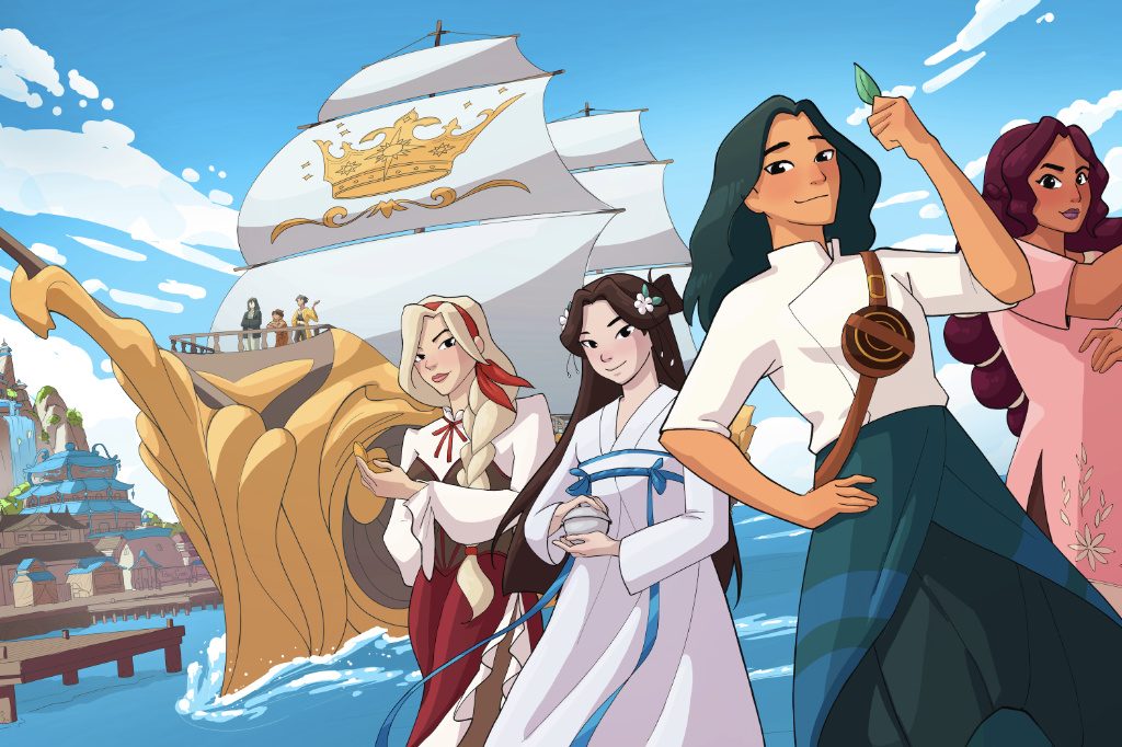 Intentábamos pensar cómo vincular los poderes del té con cada personaje. Hay siete tipos oficiales de té: té blanco, té negro, té verde, etc. Analicé qué culturas tienen una bebida significativa hecha con esos tés. Así que partimos de ahí. Y cada país tiene una casa de té. La casa de Ci, de inspiración china, es Gongfu Cha. Es de Wen Yi. Chai es el té pakistaní del sur de Asia, que es de Jai, otra cultura con la que comparto raíces.